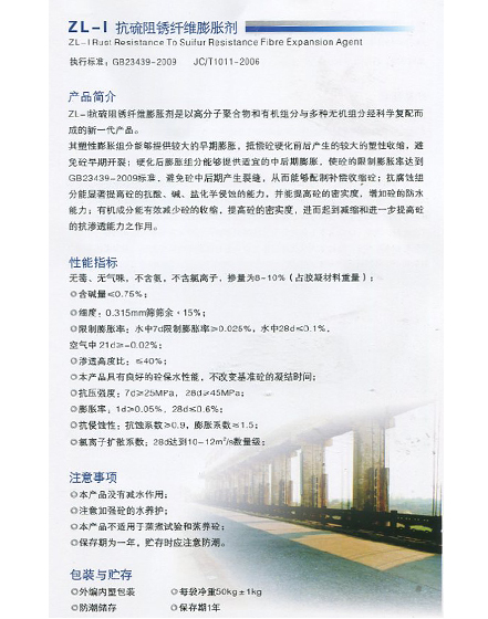 • ZL-I 抗硫阻銹纖維膨脹劑