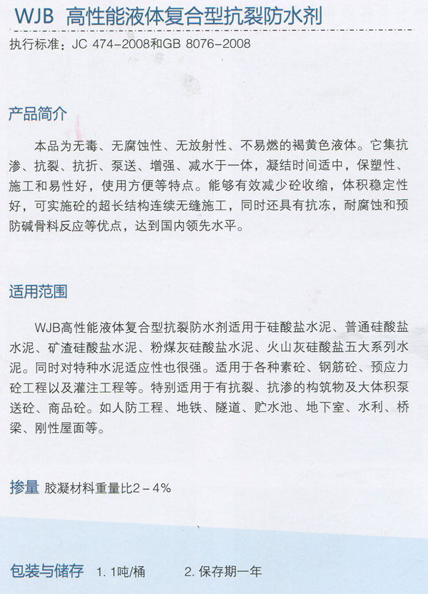 WJB 高性能液體復合型抗裂防水劑