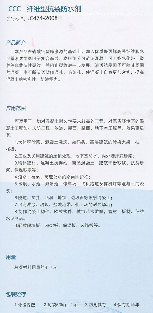CCC 纖維型抗裂防水劑