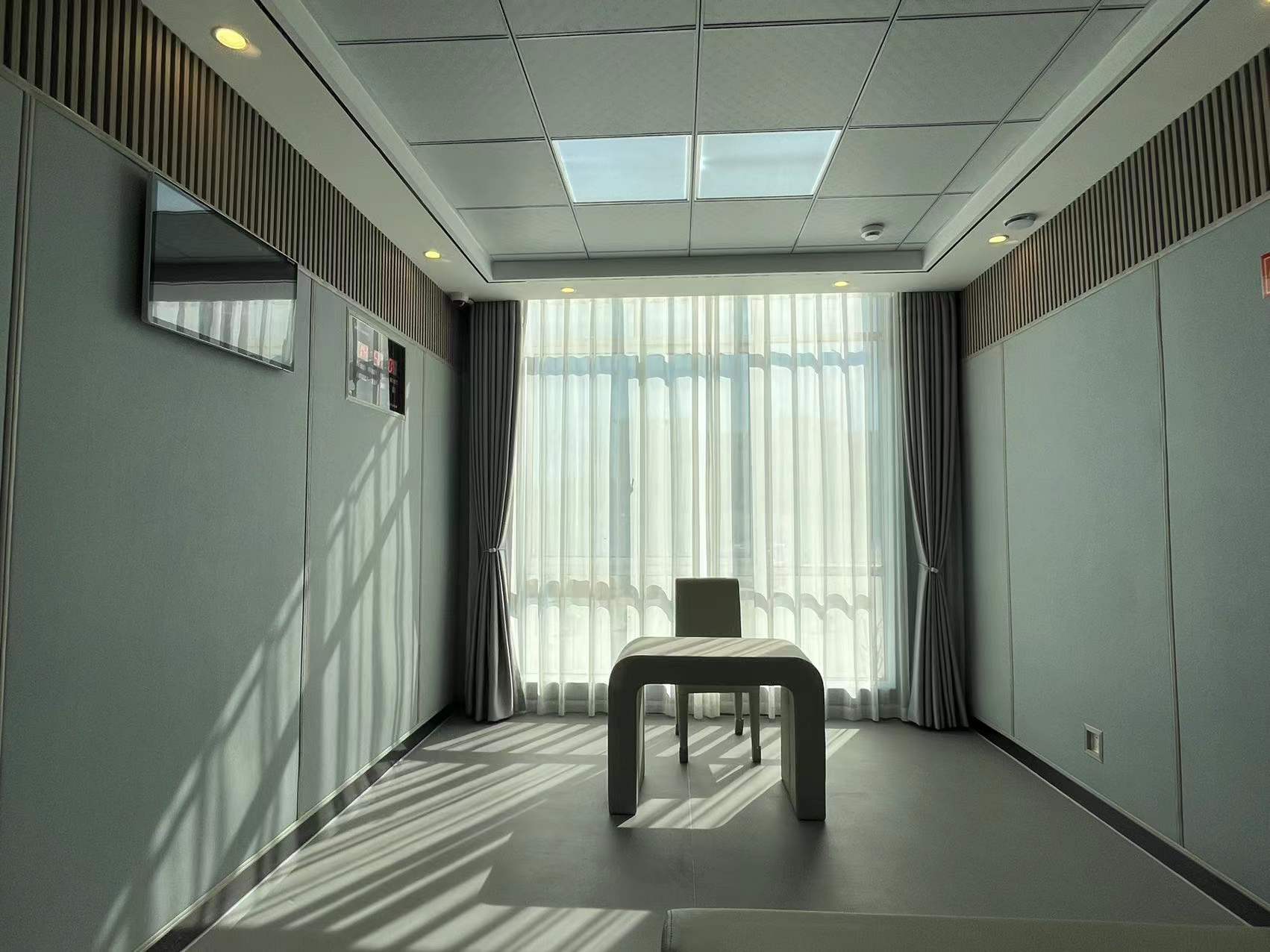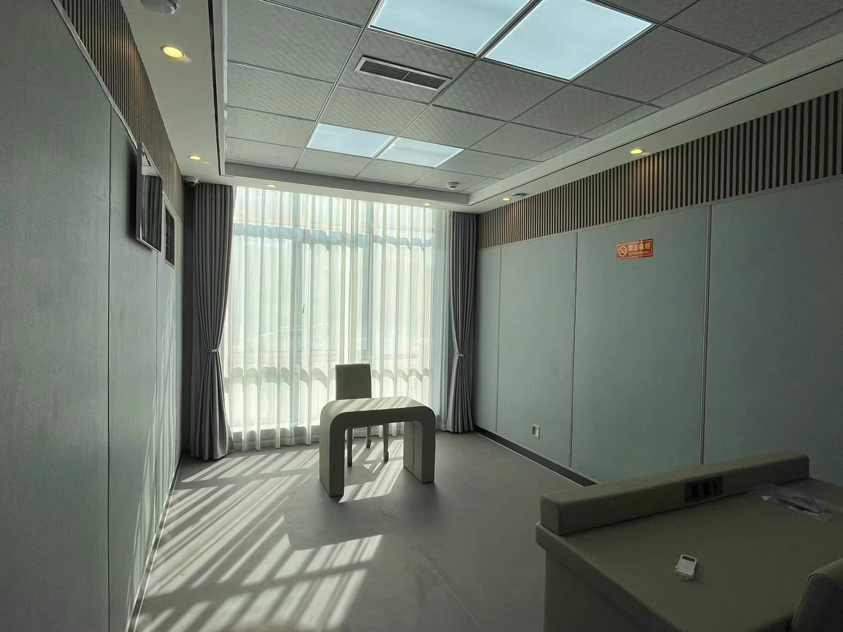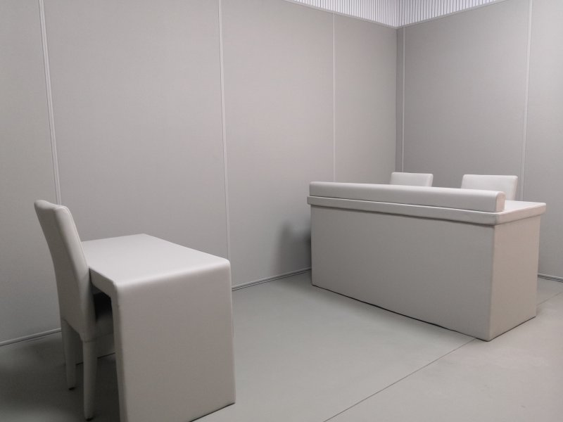 基材聚乙烯+皮革,聚乙烯棉厚度17/28mm,皮革厚度1mm大荔枝紋貼面(顏色米色/淺灰色);聚乙烯棉在皮革中采用1250*2450*20mm/1250*2450*30mm無粘多層復合新技術;審訊室軟包具有防火、環保、防撞、防水、耐磨、防刮等優點,也廣泛應用于國家審訊室建設、紀檢制度、監督制度等。審訊室防撞軟包的標準安裝方案:將木工底板安裝在墻面上,然后畫好基線,安裝好底座,軟包的背面用膠刷直接安裝在墻面上,壓好基礎線、中線等底座即可完成安裝。簡單易懂,普通木工即可完成,省時省力,常規兩、三人即可完成安裝。