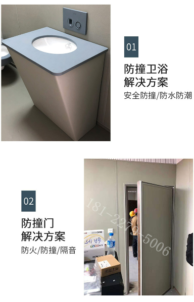 審訊室防撞馬桶、審訊室撞洗手臺。具有防沖撞傷害功能。采用雙重防沖撞傷害設計,外部防撞層用高彈性硅膠全包裹,內膽設有真空緩沖層可在大外力沖撞下提供雙重保護,極大限度避免傷害。具有防爆裂傷害功能。防撞層采用一體壓制成型,與內膽完全貼合無縫隙,解決了陶瓷材質軟包面盆軟包縫隙過大,受外力軟包層易脫落、易撕裂造成的安全隱患。